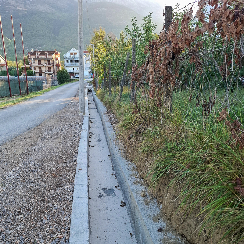 Postavljen je otvoreni armirano-betonski kanal dužine 130 metara, koji je izgrađen uz postojeći put i uklopljen u bulevar Tivat – Jaz.