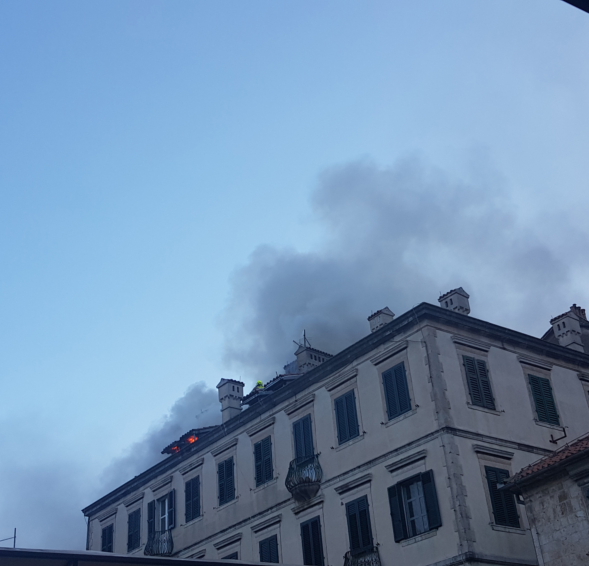 Sinoć je nešto malo prije ponoći izbio požar u potkrovlju palate Bjeladinović, na kotorskom Trgu od oružja. Na licu mjesta našli su se prvi čovjek grada Željko Aprcović, komandir Službe zaštite i spašavanja Maksim Mandić sa svojom jedinicom, kao i policija.