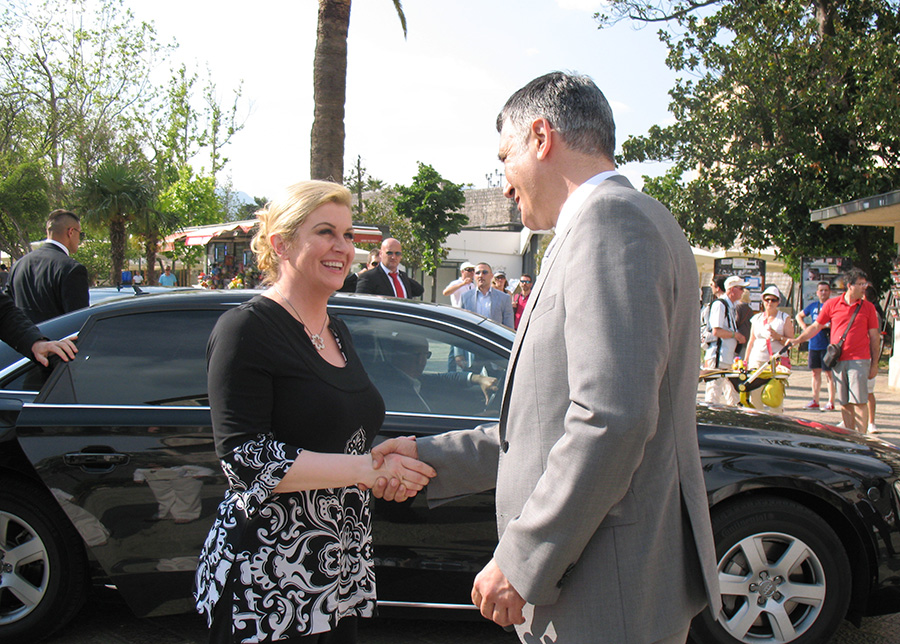 Predsjednica Hrvatske g-dja Kolinda Grabar Kitarovic je u okviru sluzbenog boravka u Crnoj Gori danas posjetila Kotor. Visoku goscu je na ulazu u Stari Grad Kotor je docekao predsjednik Opstine Kotor, Dr Aleksandar Stjepcevic sa saradnicima.