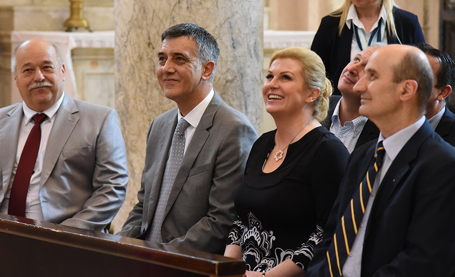 U okviru posjete Kotoru, predsjednica Grabar Kitarovic je obisla Stari Grad i posjetila Katedralu Svetog Tripuna, nakon cega se u basti hotela “Vardar” zadrzala u kracem i srdacnom razgovoru sa domacinima, kome su prisustvovali i predstavnici hrvatskog manjinskog naroda i hrvatskog konzulata u Crnoj Gori.