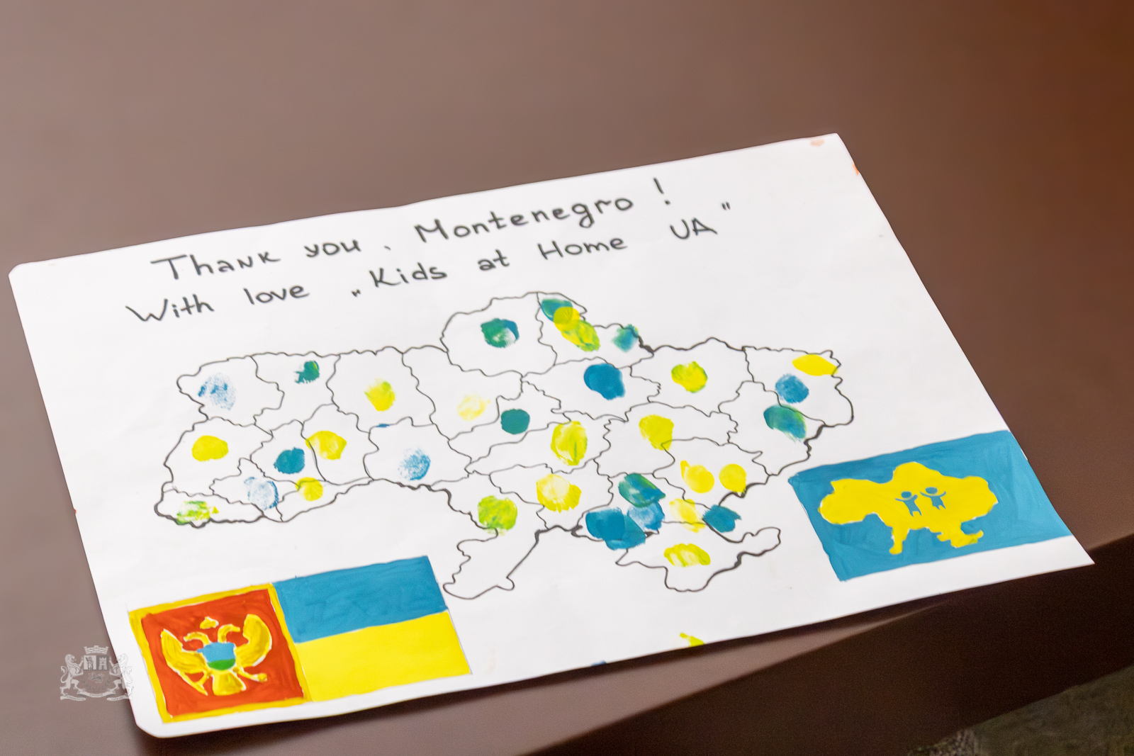 Djeca su, u znak zahvalnosti, Gradu poklonili simboličan crtež – mapu Ukrajine, na kojoj je svak od njih ostavio otisak prsta, baš na onom dijelu gdje se nalazi grad iz kojeg dolazi.