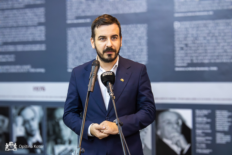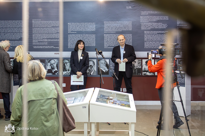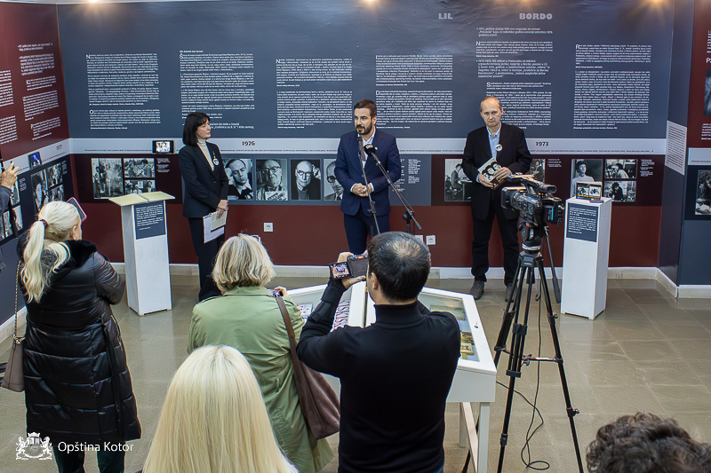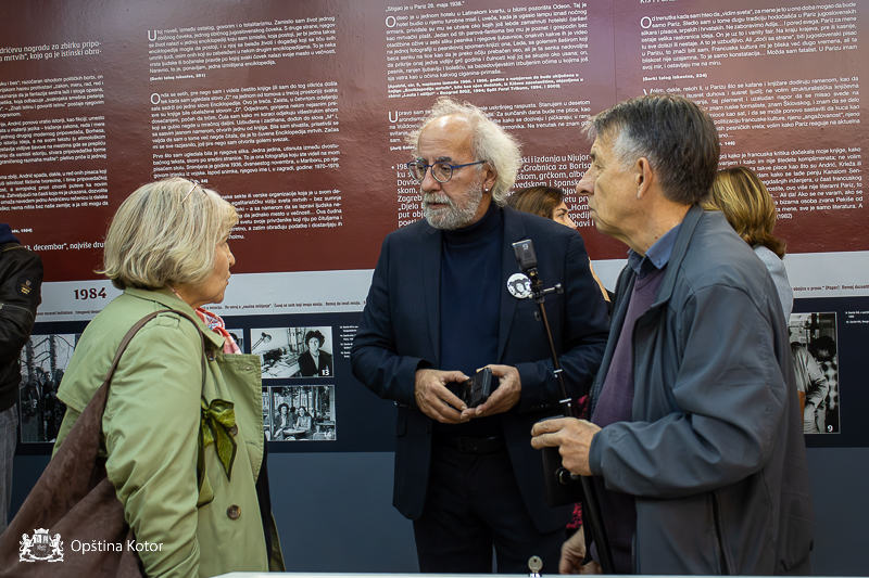 Izložbu je otvorio predsjednik Opštine Kotor Vladimir Jokić, a govorili su i Marija Starčević, rukovoditeljka Gradske biblioteke i čitaonice Kotor te Gojko Božović, glavni i odgovorni urednik izdavačke kuće „Arhipelag“.