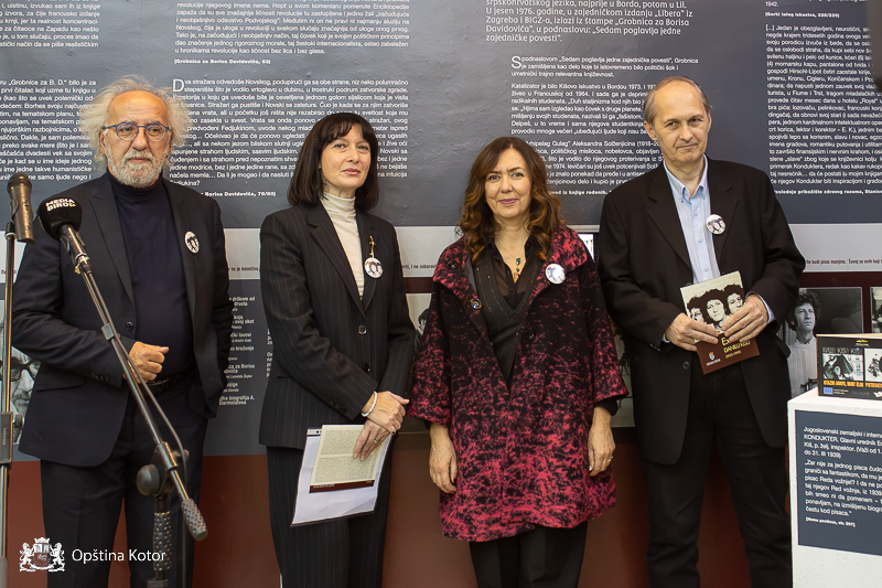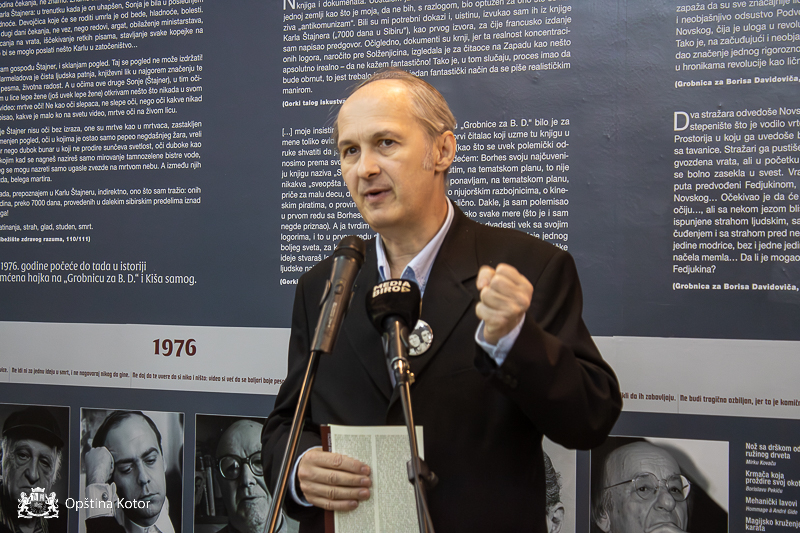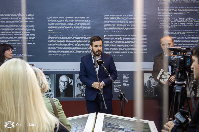 Predsjednik Opštine Kotor Vladimir Jokić u svom obraćanju apostrofirao je značaj Kišovog djela, naglasivši kako je Kiš umnogome uticao na njegovo intelektualno i moralno oblikovanje. Zaključio je da Kišova borba protiv zla i banalnosti ostaje trajna obaveza i za današnje vrijeme, simbolično otvorivši izložbu pozdravom „Borisu Davidoviču“, podvlačeći trajnu aktuelnost Kišovog opusa.