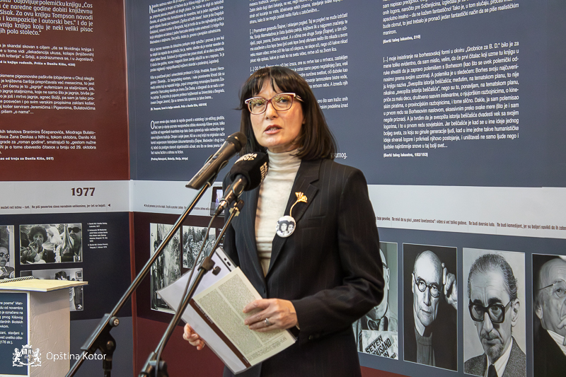 Marija Starčević istakla je da je izložba zamišljena kao svojevrsni „Ex voto“ – zavjet piscu koji je duboko vjerovao da je književnost najuzvišeniji oblik svjedočenja, a jezik jedini dar onima kojima je istorija razorila sve drugo. Ona je naglasila i posebnu simboliku što se izložba održava u Kotoru, gradu koji je Kiš opisivao kao „magično mjesto“.