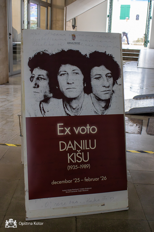 Izložba „EX VOTO Danilu Kišu (1935–1989)“ otvorena je u okviru obilježavanja Dana opštine Kotor i biće dostupna publici do kraja februara 2026. godine.